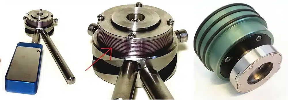 By moving the 2 handles the height of the TPL1 unit can be increased/decreased. So the capper head’s top load spring can be squeezed, and the force can be measured. The compression of the spring can be controlled on the mm-scaled rings on the tester, or digitally (by the TPL3 and TPL4 units).