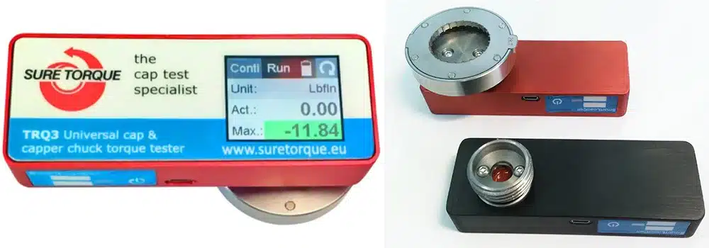 Universal handheld torque tester for closure torque testing and capper head chuck torque testing on the capper machine. Can be ordered with various test fitments for the different closure types and applications: