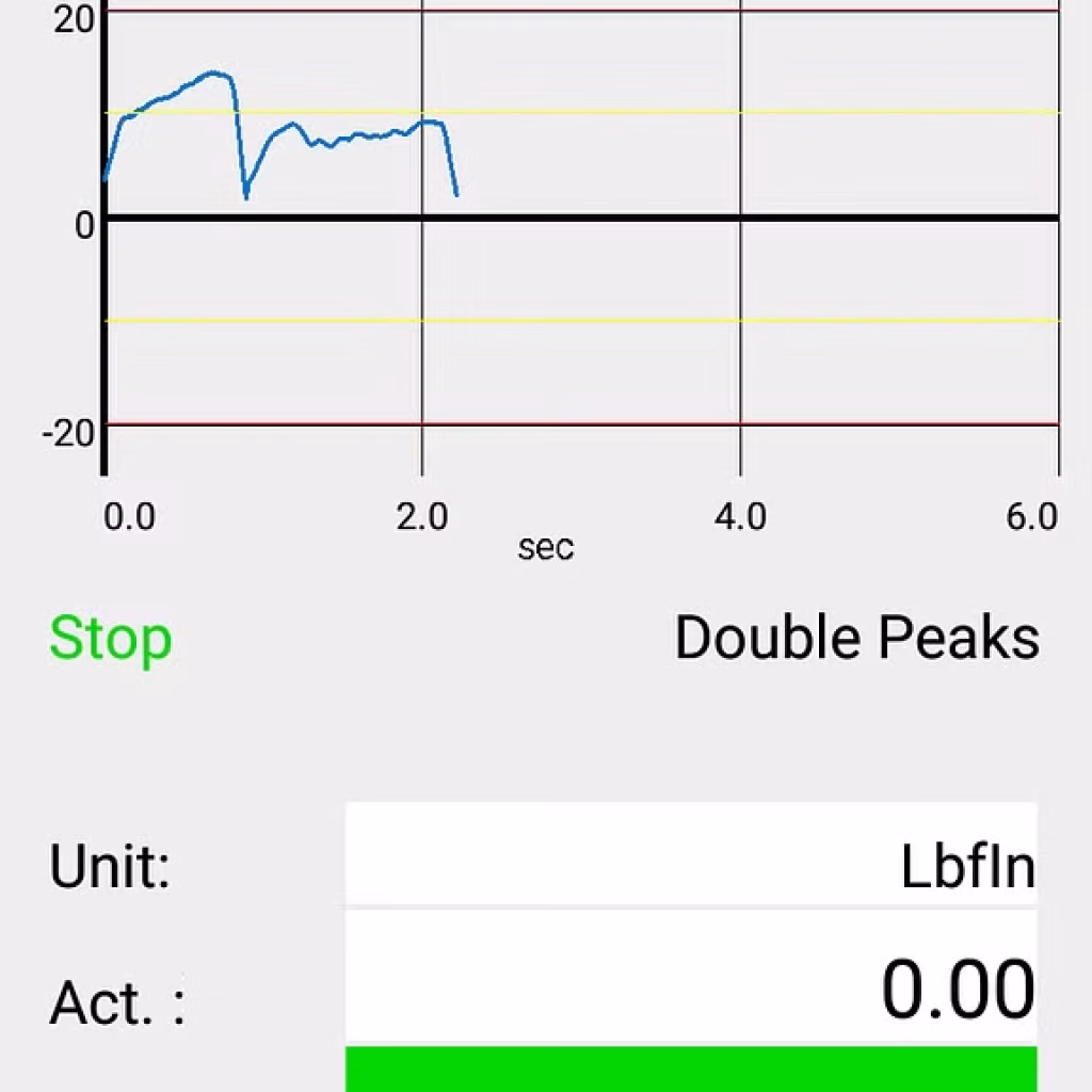 | Displayed values | Actual, Max1, (Max2), torque-time graph |